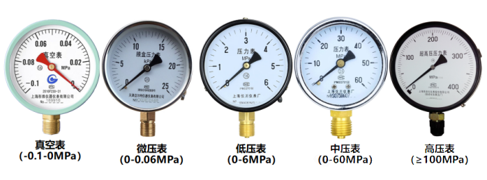 (3)按量程:真空表、微压表、低压表、中压表、高压表