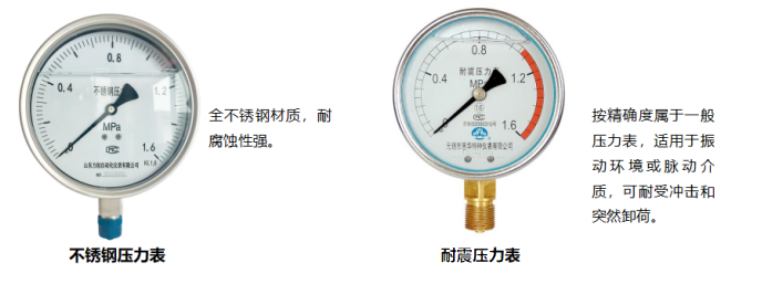 (5)按功能特征:不锈钢压力表、耐(抗)震(振)压力表……