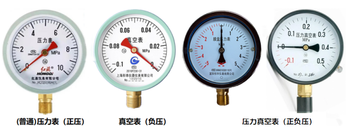 (1)按监测压力类别:压力表、真空表、压力真空表